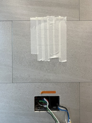 수구콘센트가 들어갈 수 있을 사이즈만큼 타일을 잘라냅니다