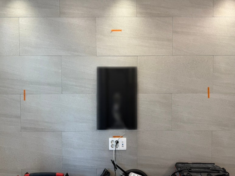 우선 아트월에 티비가 달릴 위치를 체크해놓고 고객님과 높이랑 좌우 위치가 괜찮은지 상의를 합니다