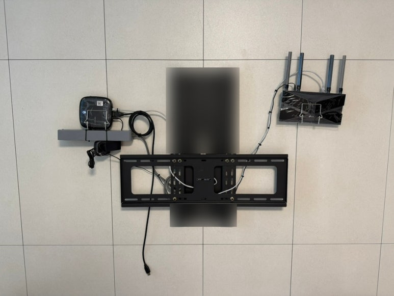 줄눈 사이에 거치대를 활용해 와이파이랑 셋탑을 달아줍니다