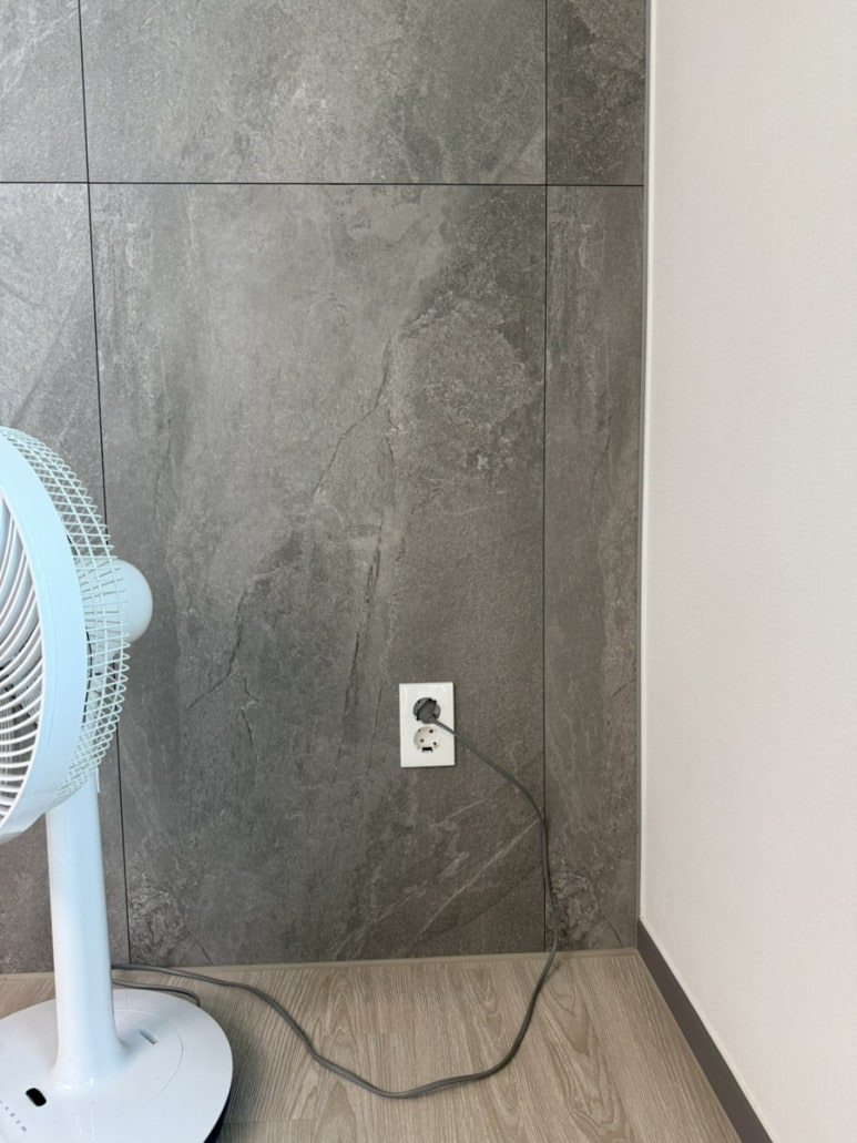 아트월 콘센트는 타일 뒤쪽으로 선을 빼는 거라 작업시간이 랜덤입니다 보통은 30분 ~ 1시간 이내로 끝나는데 선이 진짜 안 빠지는 경우 2시간 정도 걸릴 수도 있습니다