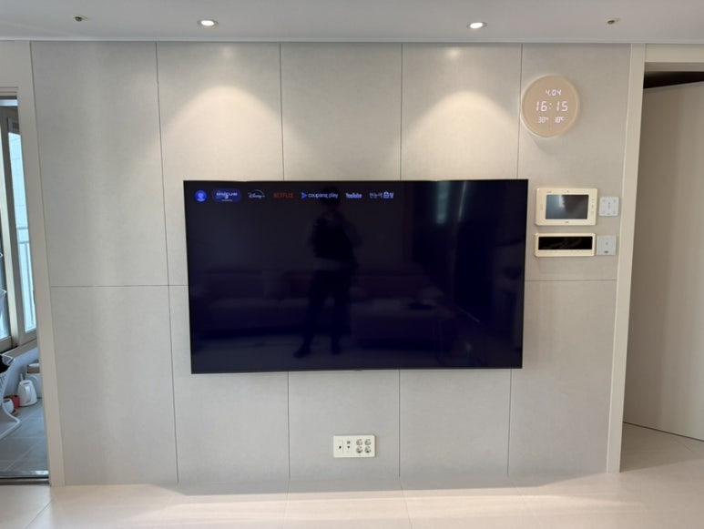 마지막으로 티비를 달게 되면 이렇게 깔끔하게 티비만 보이는 무타공 TV설치 완료입니다