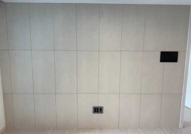 보통 아파트는 거실에 벽걸이티비를 달라고 한쪽 면만 타일로 된 벽면(아트월)로 만들어 놓습니다