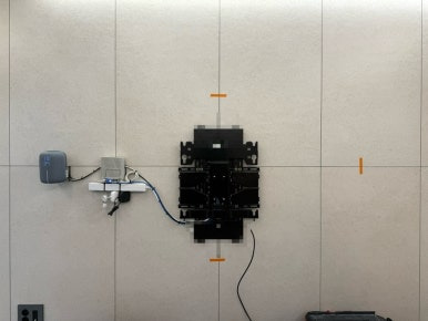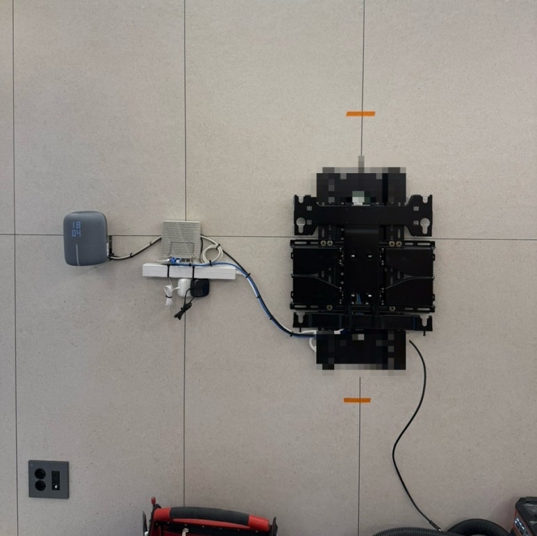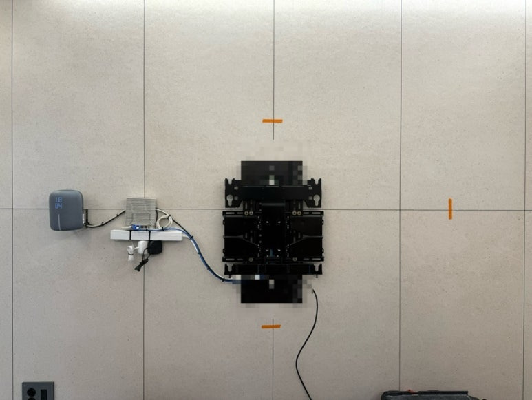 좌측 하단 콘센트에서 전원선이랑 랜선을 티비설치를 하는 중앙까지 올려야 하기 때문에 숙련도가 높고 전기 면허가 있는 업체만 설치가 가능합니다