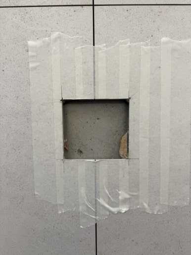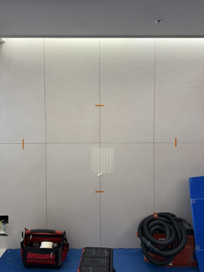 아트월 중앙에 콘센트가 들어갈 자리에 콘센트 크기만큼 체크를 하고 그라인더를 이용해 깔끔하게 잘라내줍니다