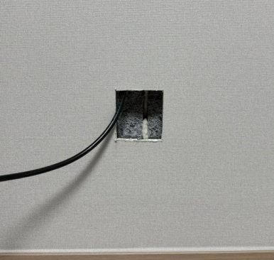 벽 뒤쪽으로 전원선을 빼내고 콘센트를 연결해 줍니다