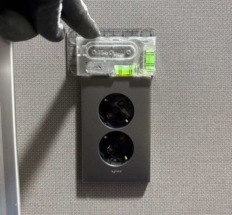 안방 콘센트 높이를 재고 콘센트 증설 위치에 수평을 맞춰서 콘센트 크기만큼 표시를 해줍니다