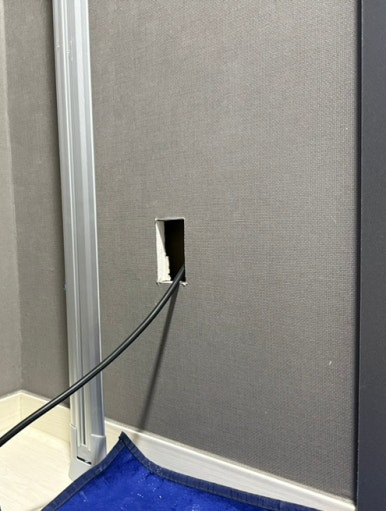 이젠 벽 뒤쪽으로 콘센트에 들어갈 전원선을 빼줍니다