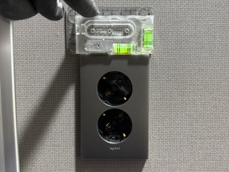 마지막으로 전원선을 콘센트에 연결해 주고 콘센트를 수평 맞춰서 달아주면 콘센트 설치 끝입니다